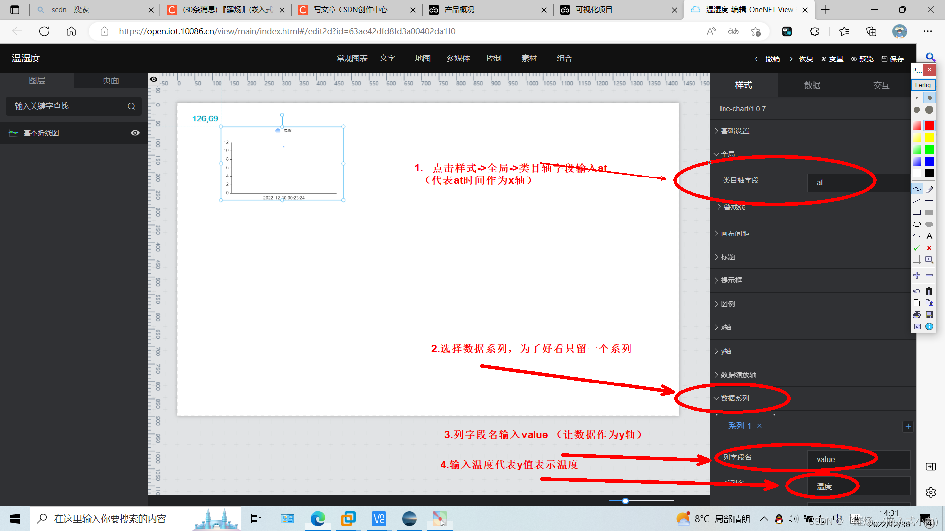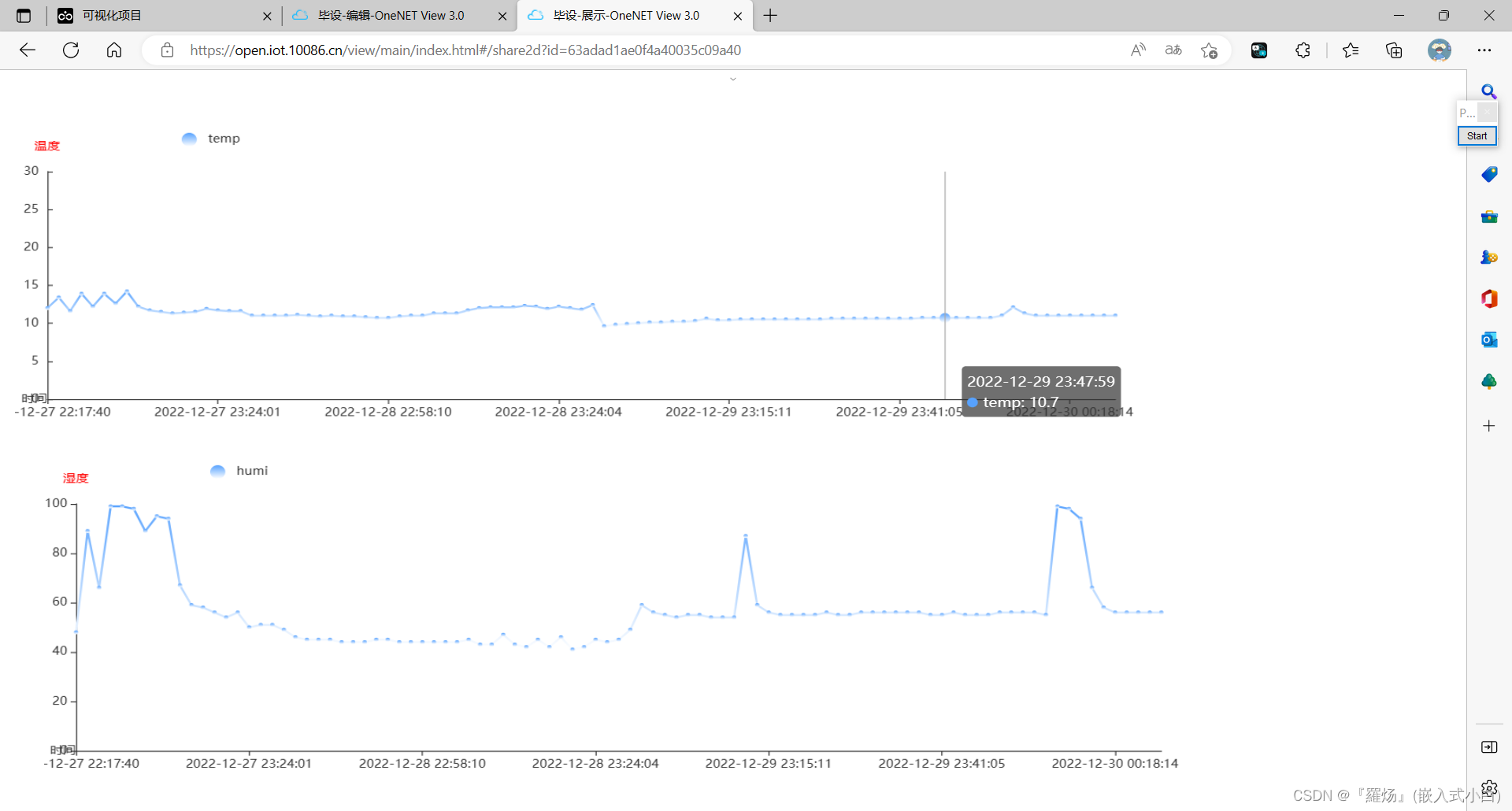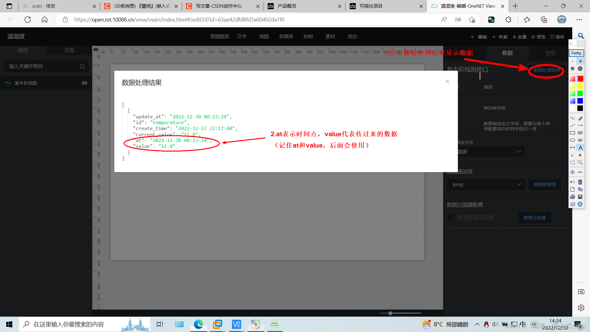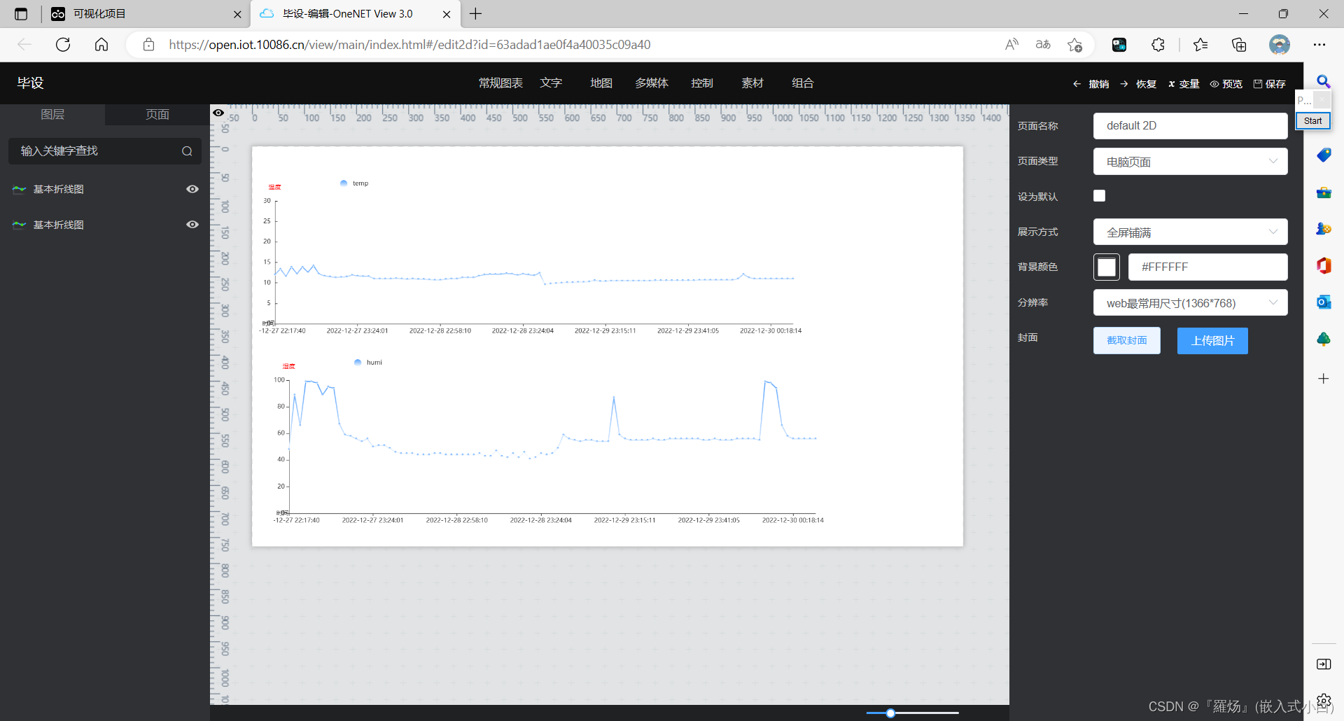 我是靠谱客的博主 温婉超短裙,这篇文章主要介绍新版本onenet如何创建应用(温湿度折线图为例)1.由于新版本onenet不能使用新增应用功能,只能使用数据可视化view。2.新建项目3.编辑view4.添加图表5.数据选择6.创建数据源7.查看数据处理结果8.进行样式设置(设置好就可以看到大概效果)9.湿度也是同样设置(设置好并保存)10.发布作品11.通过发布作品的链接访问view12.效果展示13.图表的属性(颜色、大小等可以在样式中自行设置),现在分享给大家,希望可以做个参考。