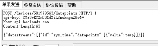 该返回结果说明,本次上传数据成功,数据上传成功后,OneNet服务器会关闭TCP连接,那么下次进行数据传送,需要重复步骤2)。