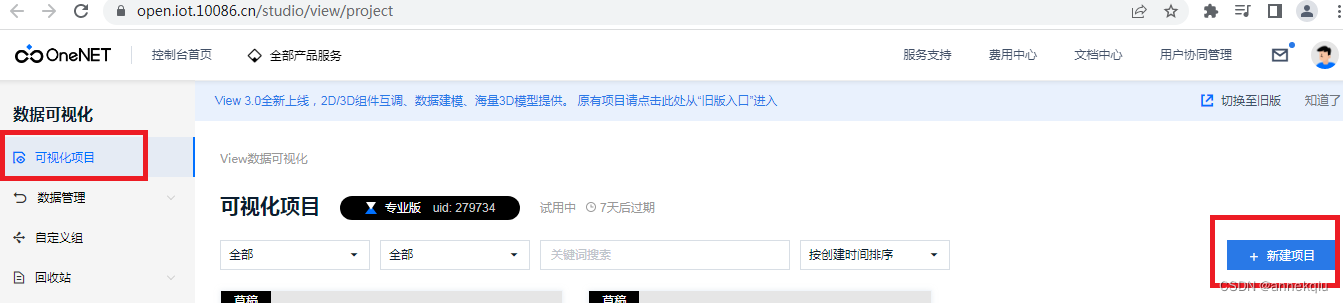 进入数据可视化界面,点击“新建项目”,选择2D-空白模板,然后建个名称,开始编辑这个模板。