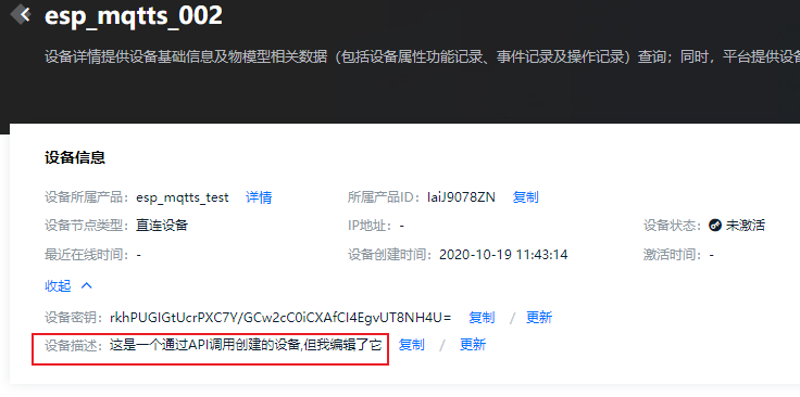 以上就是年轻萝莉最近收集整理的关于OneNet5.0 新版产品应用开发API调用指南(二) 设备管理API一. 创建设备二. 设备批量创建三. 设备编辑(没卵用)四. 删除设备五. 设备详情的全部内容,更多相关OneNet5.0内容请搜索靠谱客的其他文章。