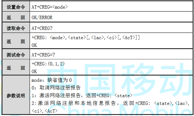 5. AT+CREG:设置自动报告网路状态