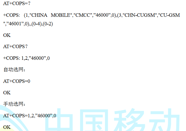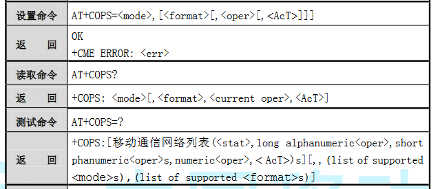 6. AT + COPS:选择和注册移动通信网络