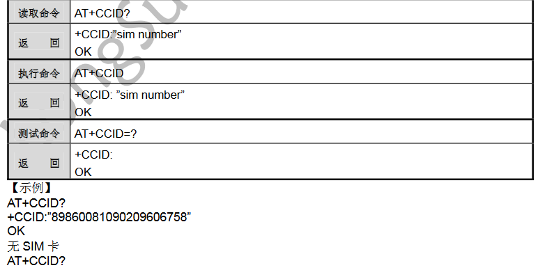 8. AT + CCID:读取SIM卡的唯一表示符号