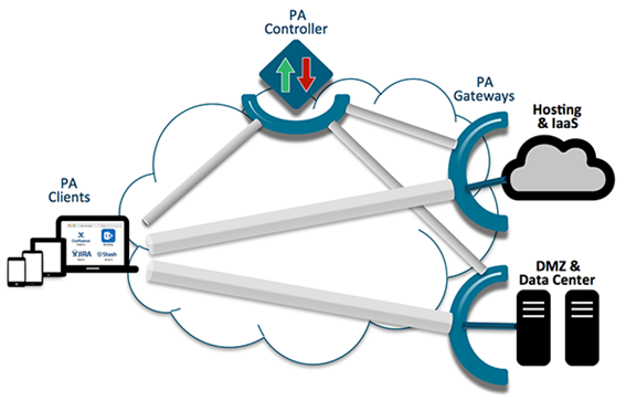 Cryptzone通过问卷调研,对于企业网络访问安全有三个发现: (1)很多企业使用的是过时的方法,在旧的网络安全模型下,缺乏对于限制授权用户和第三方的访问的解决方案。 (2)大部分的信息安全方面的破坏来自于内部威胁(insider threats)。 (3)一些公司并没有经常回顾访问策略,有的甚至已经几年没有这么做了。当策略制定好后,它们不会或者不去自动实施这些安全策略。 因此,我们需要一个新的安全模型,这个模型可以理解上下文信息,如用户位置,用户使用什么设备来建立连接的,何时建立连接的,以及用户的角色。这些信息可以集成到特定上下文的访问规则中,基于上下文参数的认证检查和对于资源的访问能够提供对于边界内部和外部的威胁的更好的防护。 对于用户的访问控制并不仅仅是在用户访问网络之前对于用户的认证,安全的一个基本方法就是要意识到任何人都可以声称他/她是某个人。 Vidder[⑤]公司的产品为PrecisionAccess。PrecisionAccess使得用户和不同公司、组织、控制区域的应用进行安全连接。PrecisionAccess基于SDP。PrecisionAccess基于预认证(pre-authentication)建立连通性。预认证的意思是在提供应用的可见性和连通性之前首先验证用户的可信和权限。它通过三种方式对抗基于网络的攻击:透明MFA可以抵抗证书丢失,服务器隔离可以抵抗服务器利用, TLS双向认证可以抵抗连接劫持。 PrecisionAccess的架构如下图所示,由三个组件组成,PA控制器、PA网关和PA客户端。PA控制器决定了哪些PA客户端可以互相连接。控制器有可能将信息转发到外部的认证服务,比如证实、地理定位、身份服务器等。PA客户端与PA控制器进行通信来请求可连接的主机列表。控制器可以在提供信息之前向PA网关之内的主机请求信息,如软硬件清单。初始时,PA网关之内的主机只与PA控制器进行通信,只在控制器的请求下与PA客户端建立连接。![]()