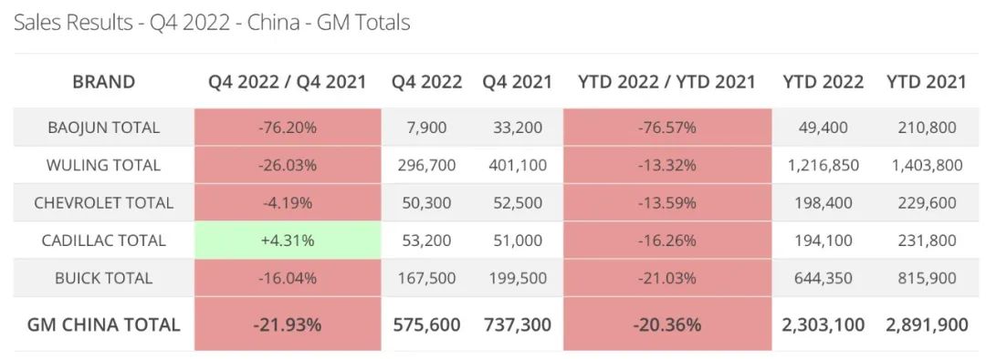 旗下品牌销量全线下滑(合计同比下滑20.36%),这是通用汽车在中国市场交出的2022年成绩单。根据高工智能汽车研究院监测数据显示,2022年中国市场(不含进出口)合资/外资品牌乘用车合计交付量同比2021年下滑8.52%。