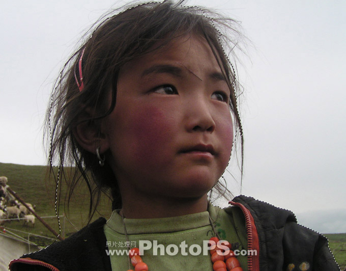 这是一张在甘南用小DC拍摄300万像素的照片,人物表情和瞬间不错,可惜背景比较杂乱,阴天的光线表现力也不够,于是决定通过后期改换背景和光线,达到想要的画意效果。
