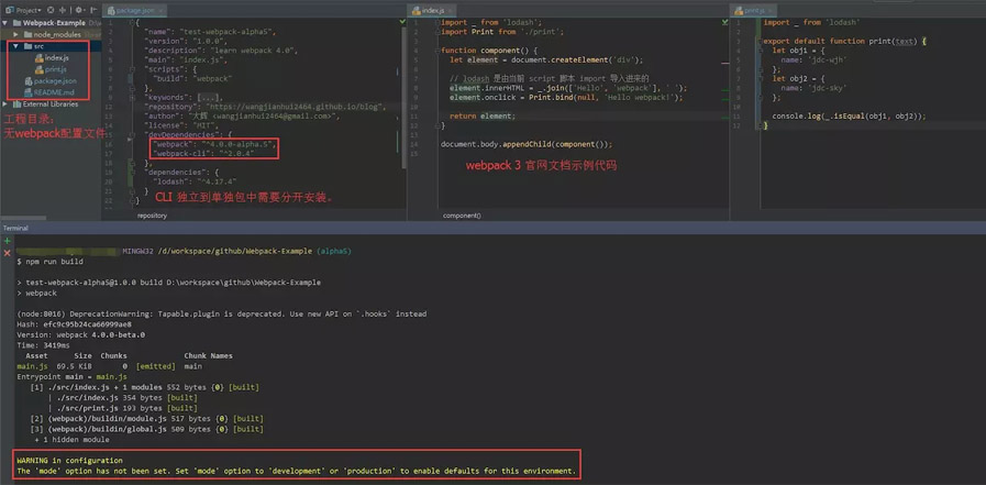 这意味着您不再需要配置文件来启动 webpack。接下来我们为你演示webpack 4.0.0-beta.0的便捷操作: