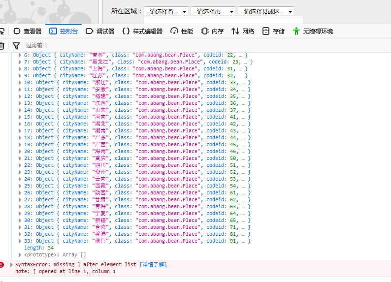 在写一个省市级三级连动的时候,遇到一个问题: