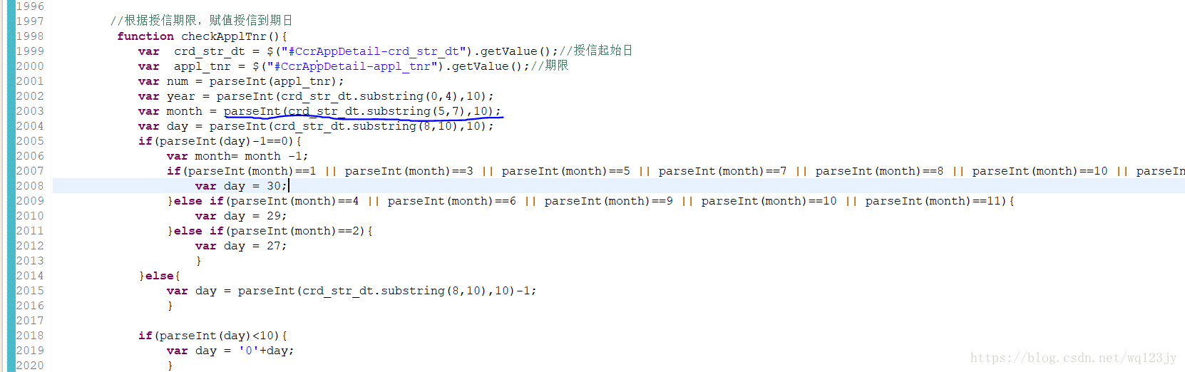 1.parseInt问题,直接上图,var year = parseInt(crd_str_dt.substring(0,4));,