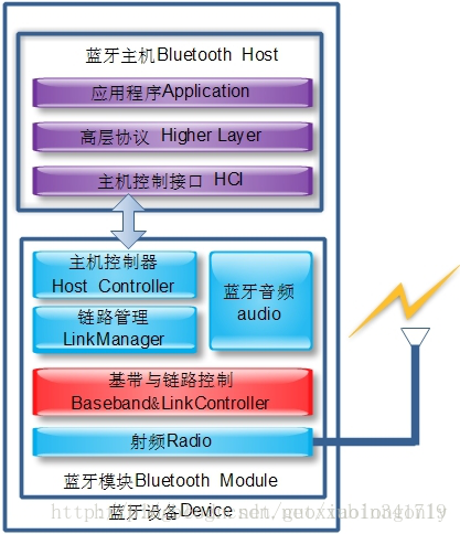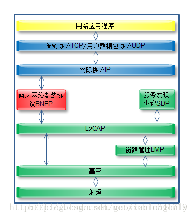 底层传输协议负责语言、数据无线传输的物理实现以及蓝牙设备间的联网组网,包括蓝牙射频协议、基带链路控制协议BLC、链路管理协议LMP。