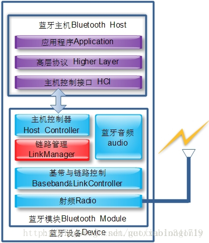 - 负责完成设备的功率管理、链路质量管理、链路控制管理、数据分组管理、链路安全管理。