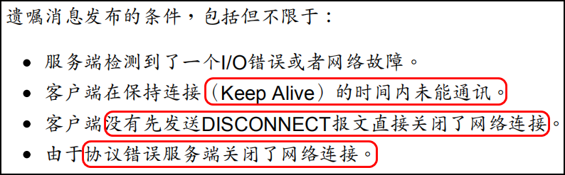 服务端发送完,如有则删除遗嘱,如客户端未关闭连接则关闭连接;