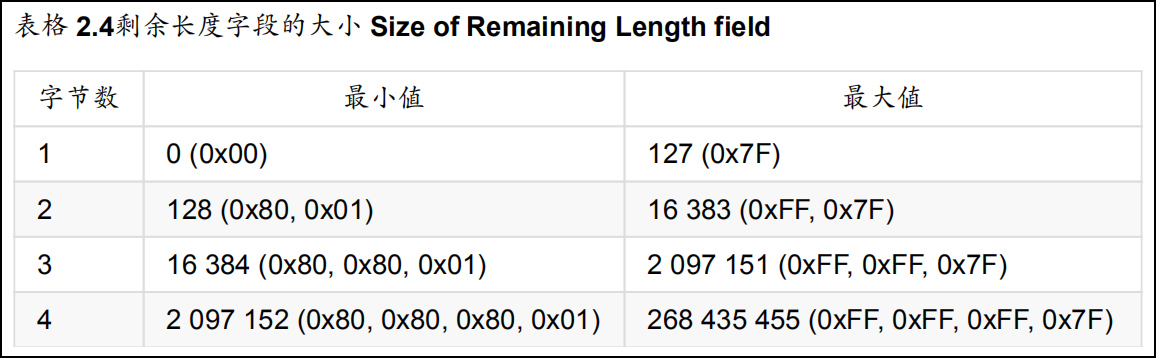 也就是128进制,举个例子,比如剩余长度编码为两个字节,第一个字节1111 1111,第二个字节0111 1111;
