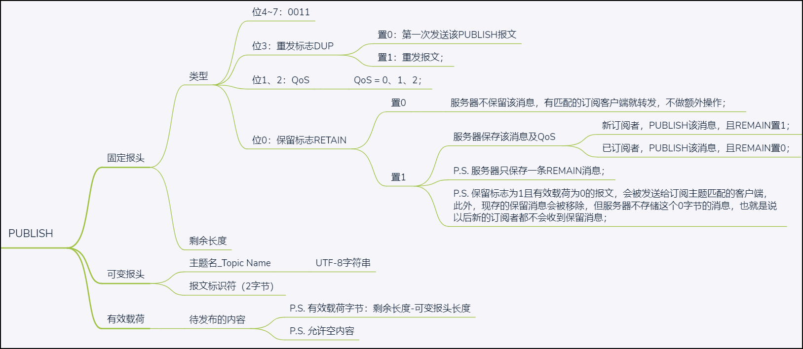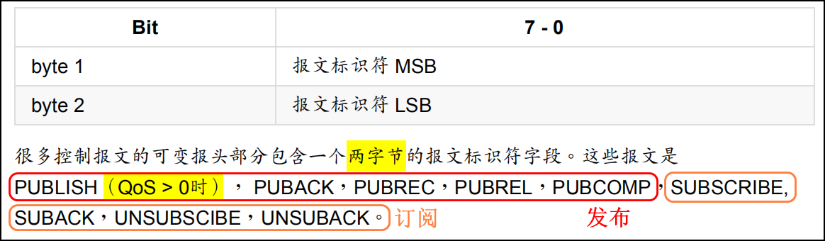 除发布PUBLISH外,其余报文类型标志位都是与报文类型直接一一对应的;