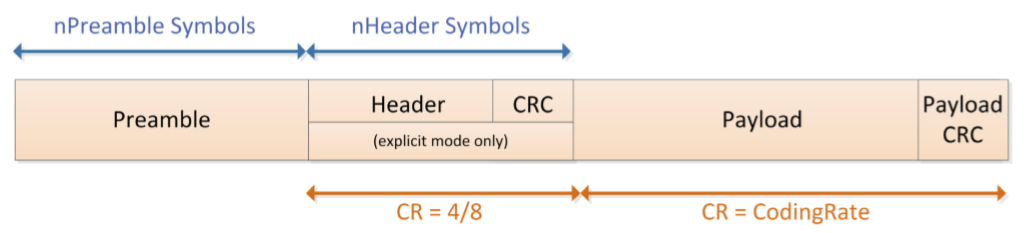 LoRa有两种包格式,显性模式和隐形模式。显性模式下有Header部分,隐形模式没有。