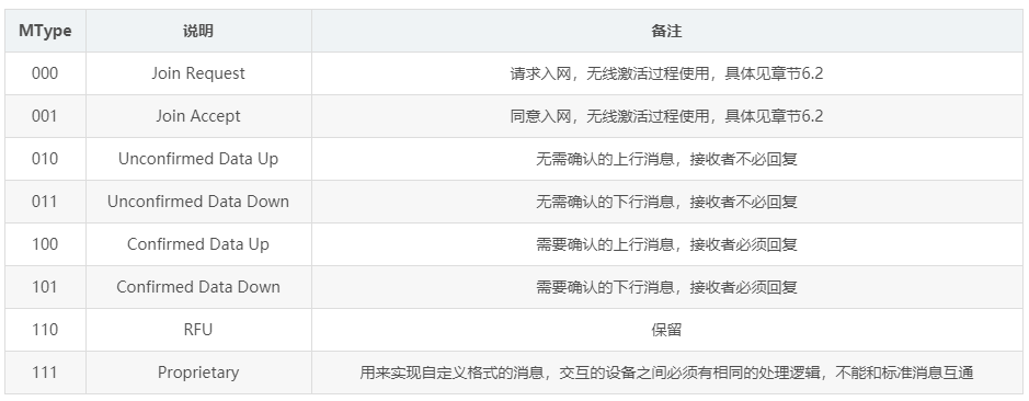 - LoRaWAN规定数据帧类型有 Confirmed 或者 Unconfirmed 两种,即需要应答和不需要应答类型。厂商可以根据应用需要选择合适的类型。