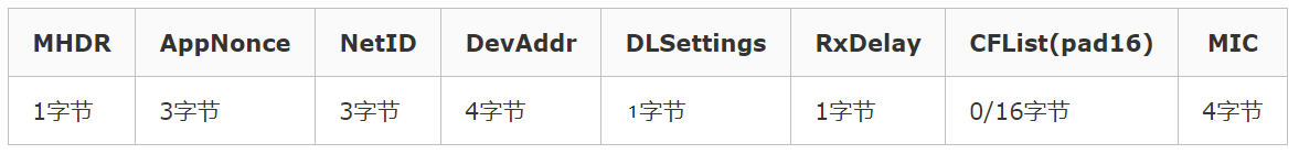 - CFList:服务器将信道列表带给终端。每个通道占用三个字节,最多下发5个通道