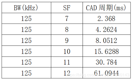 发送方的前导码时间要大于CAD整个周期,这样才能保证接收方正常接收数据。CAD接收时间:Trec=(2^SF+32)/BW,整个CAD周期:Tcad=1.85*Trec。