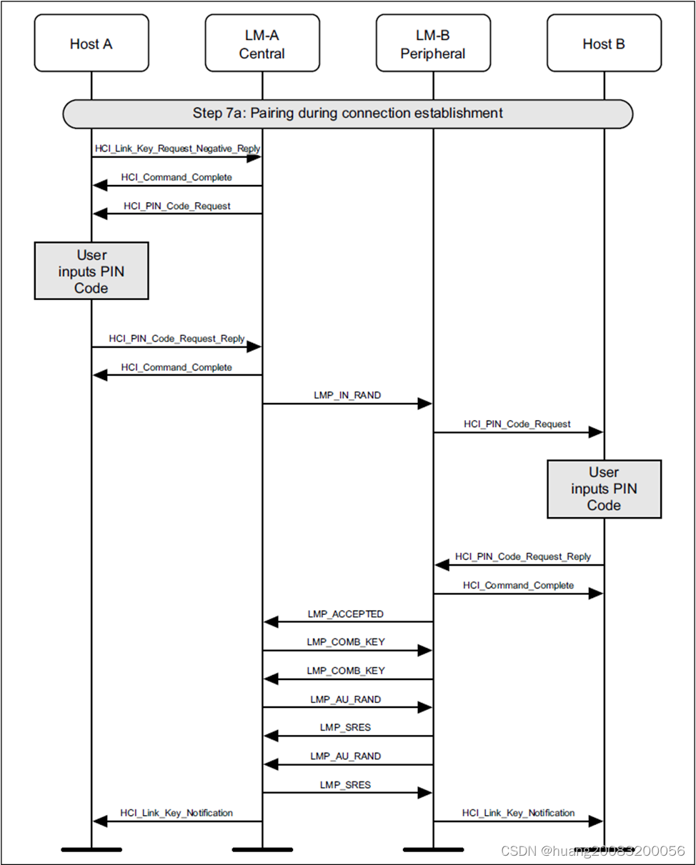 寻呼建立连接以后,控制器基带即建立连接,同时ACL-C逻辑链路也建立连接,LM(Link Manager)可以在ACL-C逻辑链路上通过LMP协议互相通信。