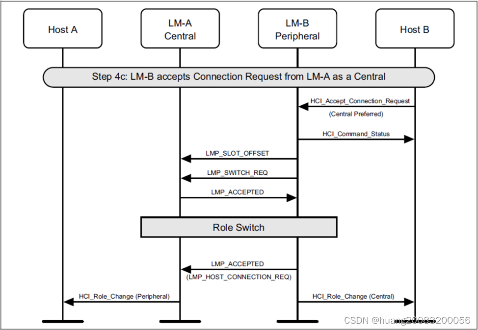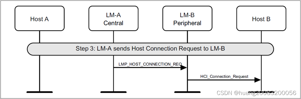 步骤3:链路管理器LM向对端LM请求主机连接LMP_HOST_CONNECTION_REQ。