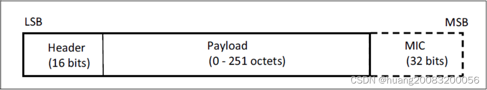 等时同步通道PDU包格式包含16位的Header字段、可变长的Payload字段以及可选的32位消息完整性校验(MIC)字段。