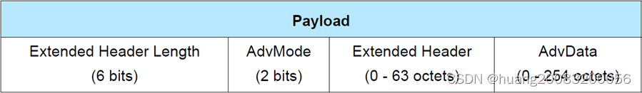 当使用扩展广播报文时,Payload使用通用扩展广播载荷格式(Common Extended Advertising Payload Format)。如果具有AuxPtr字段引导下一个扩展广播报文时,则扩展帧间的最小间隔定义为T_MAFS=300us。
