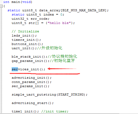 之后调用ble_nus_init函数来对我们的service进行注册。