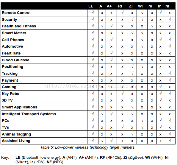 WiFi > BLE > ANT > Nike+ > IrDA > ZigBee