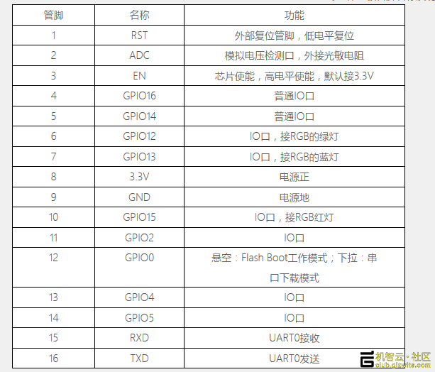 小黑板是安信可基于ESP8266研发的开发板,板载1颗三色RGBLED,光敏电阻,3.3V LDO电源模块,以及1个轻触按键,可在官网查看原理图,原理图如下: