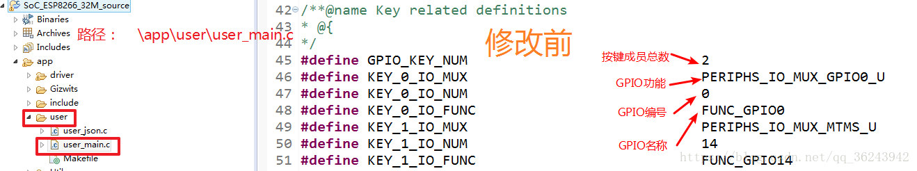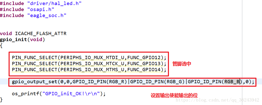 在程序入口 user_init() 初始化我们需要用到的GPIO