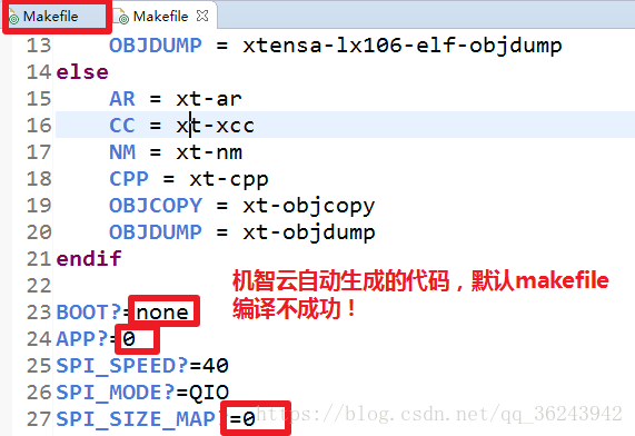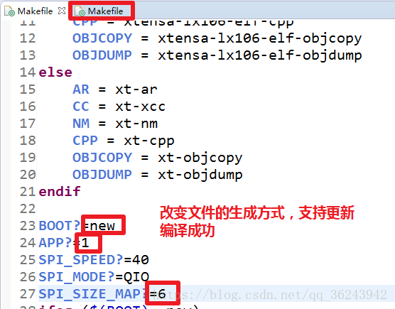2.修改makeFile文件:因为自动生成的代码是没有OTA的地址烧录的,修改如下: