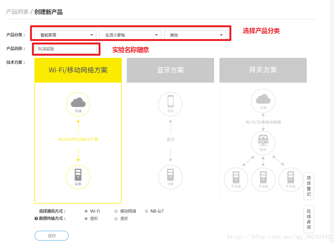 1.进入机智云官网注册账号,创建新产品