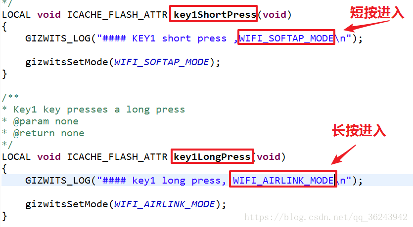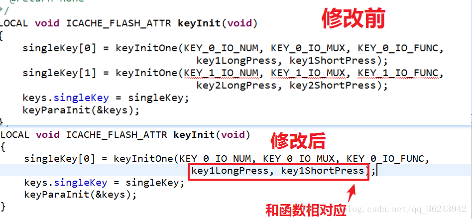 我们只需要一个按键进入配网模式,而且和官方默认的按键不同,所以需要修改如下:
