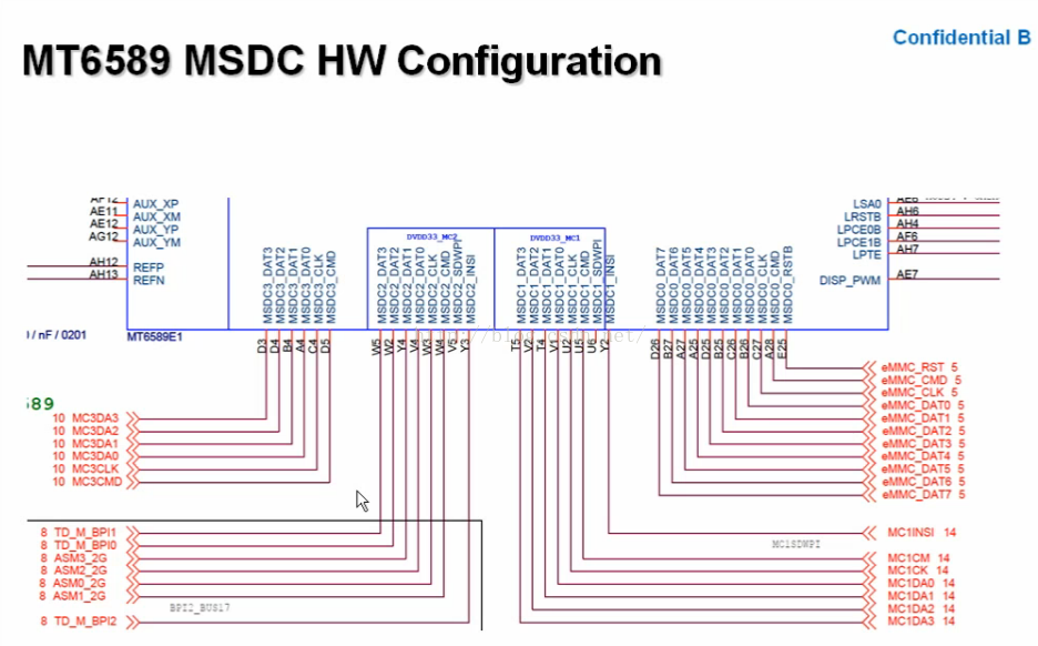 下图是MT6589平台,SDIO接口的硬件电路图,该平台有四组SDIO,其中MT6520/28会用到其中一组,当然SDIO仅用于WIFI的数据通信。