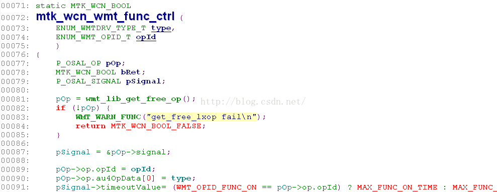 sys_if_tx函数指针在mtk_wcn_stp_init函数中赋值,从stp_drv_init函数中可得知对应的函数为mtk_wcn_sys_if_tx,其代码如下,