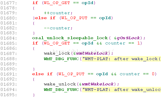 第98行,wmt_lib_host_awake_get ->wmt_plat_wake_lock_ctrl(WL_OP_GET);如下面代码所示,