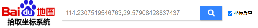 其中x即百度地图经度:114.2307519546763,y即百度地图纬度:29.57908428837437。