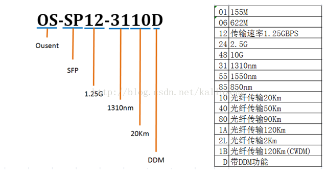 OS-SP12-3110D光模块产品命名规则表