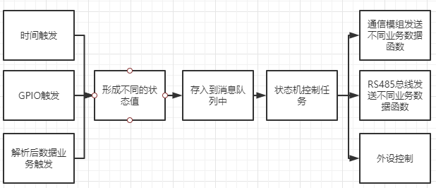 状态机任务,会是一直读取状态机的消息队列,根据事件值来分别调度和分发对应的业务函数。例如下图