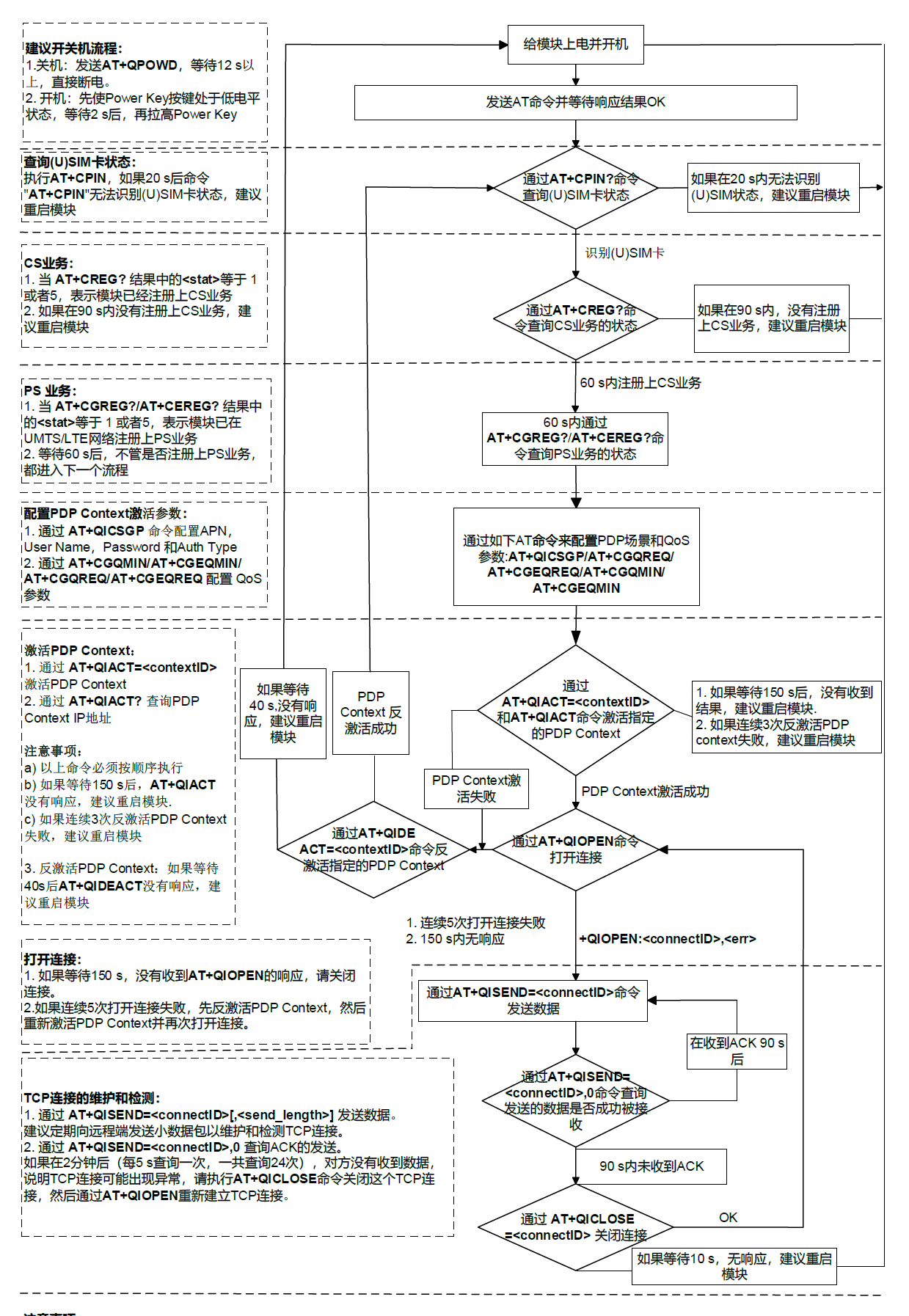 2. EC600s AT命令 - TCP/IP联网 - 流程图