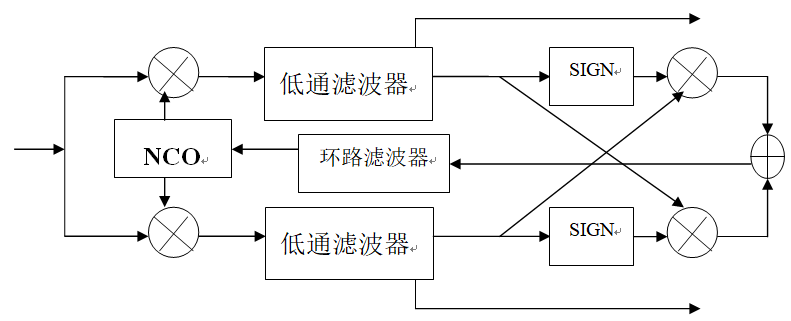 QPSK调制技术是一种恒包络调制技术,受系统非线性影响小,具有较高的带宽利用率和功率利用率,在卫星环境、无线环境下得到广泛应用。因此,在通信信号侦收设备所处理的信号中,存在大量的QPSK信号。在传统的侦收设备中,接收机的解调单元都是采用模拟处理方法和器件实现的。大都使用了模拟滤波器、鉴相器(乘法器)和压控振荡器(VCO)。这种传统的模拟解调单元电路体积大,形式复杂;调试过程复杂、调试周期长;器件内部噪声大,易受环境影响,可靠性差。因此,这种传统的侦收设备不能完全发挥数字通信的优势,实现信号的最佳接收。