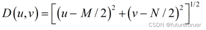 其中:对于大小为M*N的图像,频率点(u,v)与频域中心的距离为D(u,v),其表达式为: