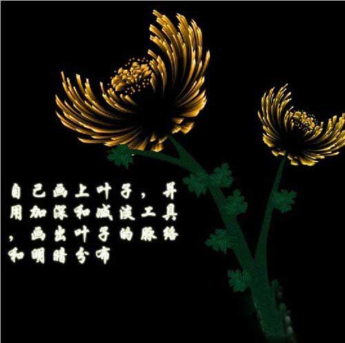 自己画上叶子,并用加深,减淡工具画出叶子的脉络和明暗分布。