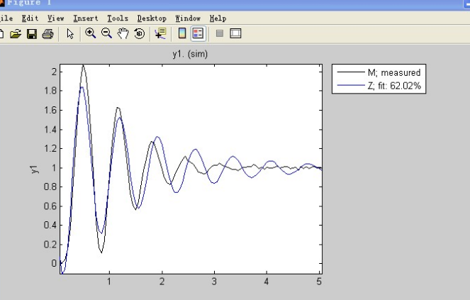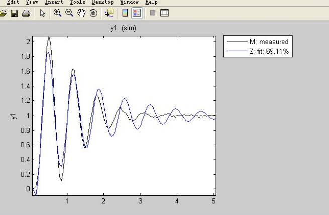 得到了系统传递函数,对其使用阶跃响应step命令,并与原数据线对比,看是否吻合。命令如下: