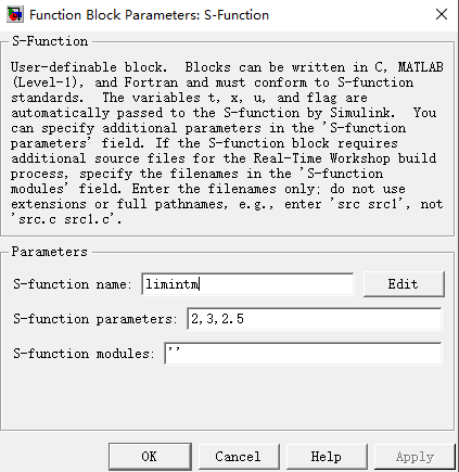 以matlab自带的限制积分函数程序limintm为例,讲解S-函数的编写。
