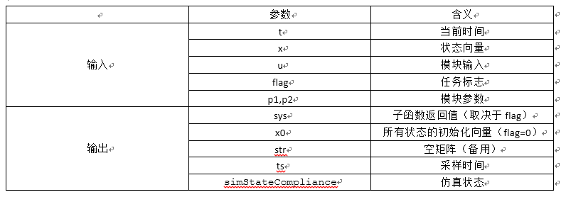 1.1 S函数的输入输出参数含义