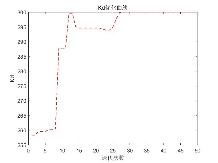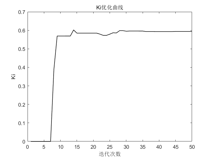 由于是求最小值,而取目标函数为适应度函数,所以适应度是呈下降的趋势;由于这里PID优化参数中i的变化很小,为了展示其优化的过程,所以将PID3个参数的优化值分别拿出来展示。