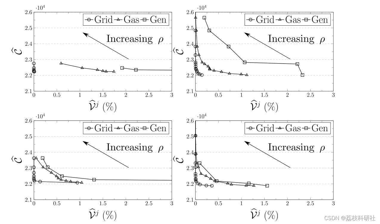 另一方面,随机规划模型在规定的离散分布下使预期成本最小化[21,23],但除非离散点的数量随问题维度呈指数增长,否则其解决方案可能表现出较差的样本外性能。最后,机会约束规划模型不考虑可再生能源泄漏和甩负荷,但确保在没有这些严重的补救措施的情况下,系统保持高概率稳定[5,18,25]。当难以或甚至不可能以有意义的方式将追索权和不可行性货币化时,机会受限的编程公式尤其具有吸引力。不利的是,这些公式通常不能保证产生可行的可实施的第一阶段解决方案。