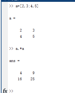 2、" .* " 即对应元素相乘,两个矩阵必须满足规格相同