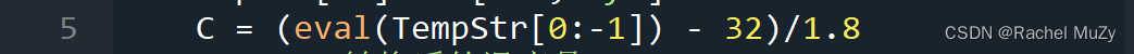 C = (eval(TempStr[0:-1]) - 32)/1.8